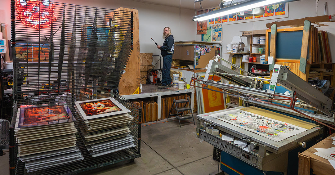 Lindsey Kuhn (b. Evanston, IL, 1968) is a contemporary artist who is lauded for his distinct fusion of art, music and skateboarding culture. Employing sophisticated silkscreen techniques, Kuhn’s paintings & prints are defined by supercharged colors, and a creative impulse that oscillates between satirical and subversive.