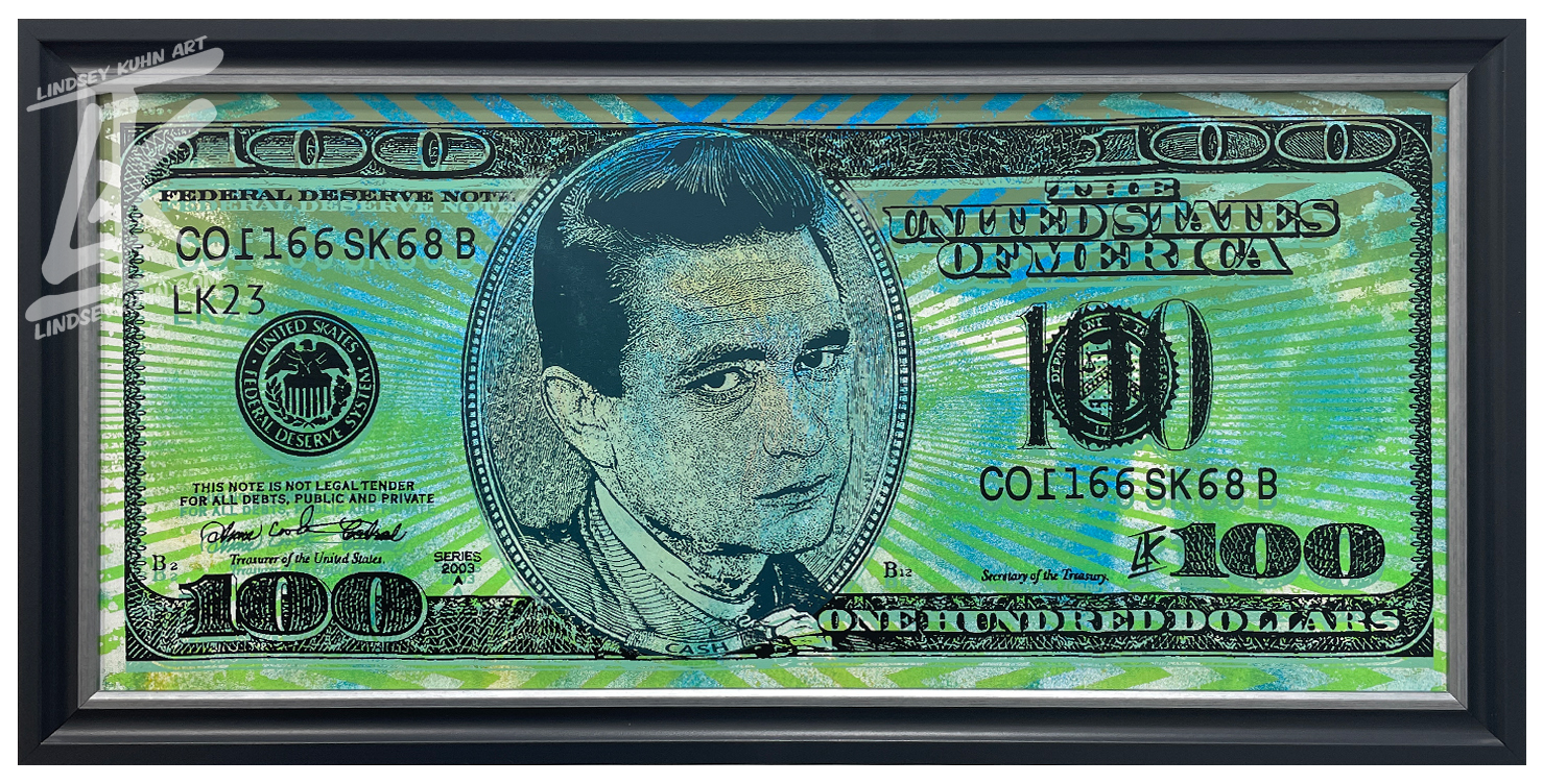 Like the cultural icons depicted in these artworks, Kuhn portrays the bill itself as a kind of historical relic — a testament to our changing values, both literally and figuratively. With Kuhn’s signature blend of satire and sarcasm, "100 Bucks" pays irreverent homage to our society’s driving forces: money and celebrity.