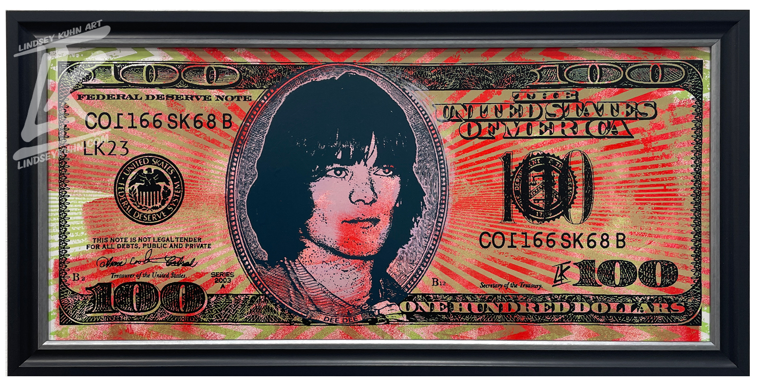 Like the cultural icons depicted in these artworks, Kuhn portrays the bill itself as a kind of historical relic — a testament to our changing values, both literally and figuratively. With Kuhn’s signature blend of satire and sarcasm, "100 Bucks" pays irreverent homage to our society’s driving forces: money and celebrity.