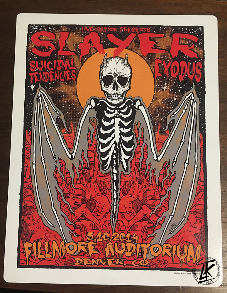 Color twist art print based on the Classic Art from Kuhn's 2014- Slayer / Suicidal Tendencies / Exodus Poster @ the Denver Fillmore!